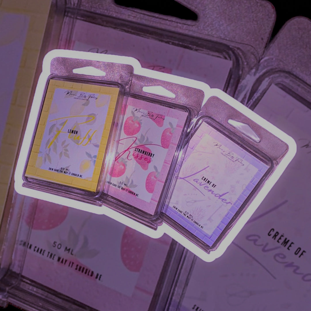 Fill your space with irresistible fragrance without the flame. Each wax melt is hand-poured with our signature wax blend, designed to deliver a clean, even melt and long-lasting scent throw. Our wax melts are perfect for creating a cozy atmosphere in any room. Simply pop one into your favorite warmer and let the scent of Marie’s Body Factory transform your space.