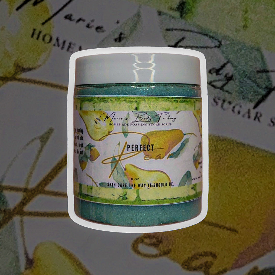 Brighten your skincare routine with Perfect Pear Foaming Sugar Scrub. Juicy pear and crisp apple open the scent, softened by hints of blossoms and vanilla. As it foams and exfoliates, your skin is left silky smooth and lightly fragranced with orchard-fresh sweetness.